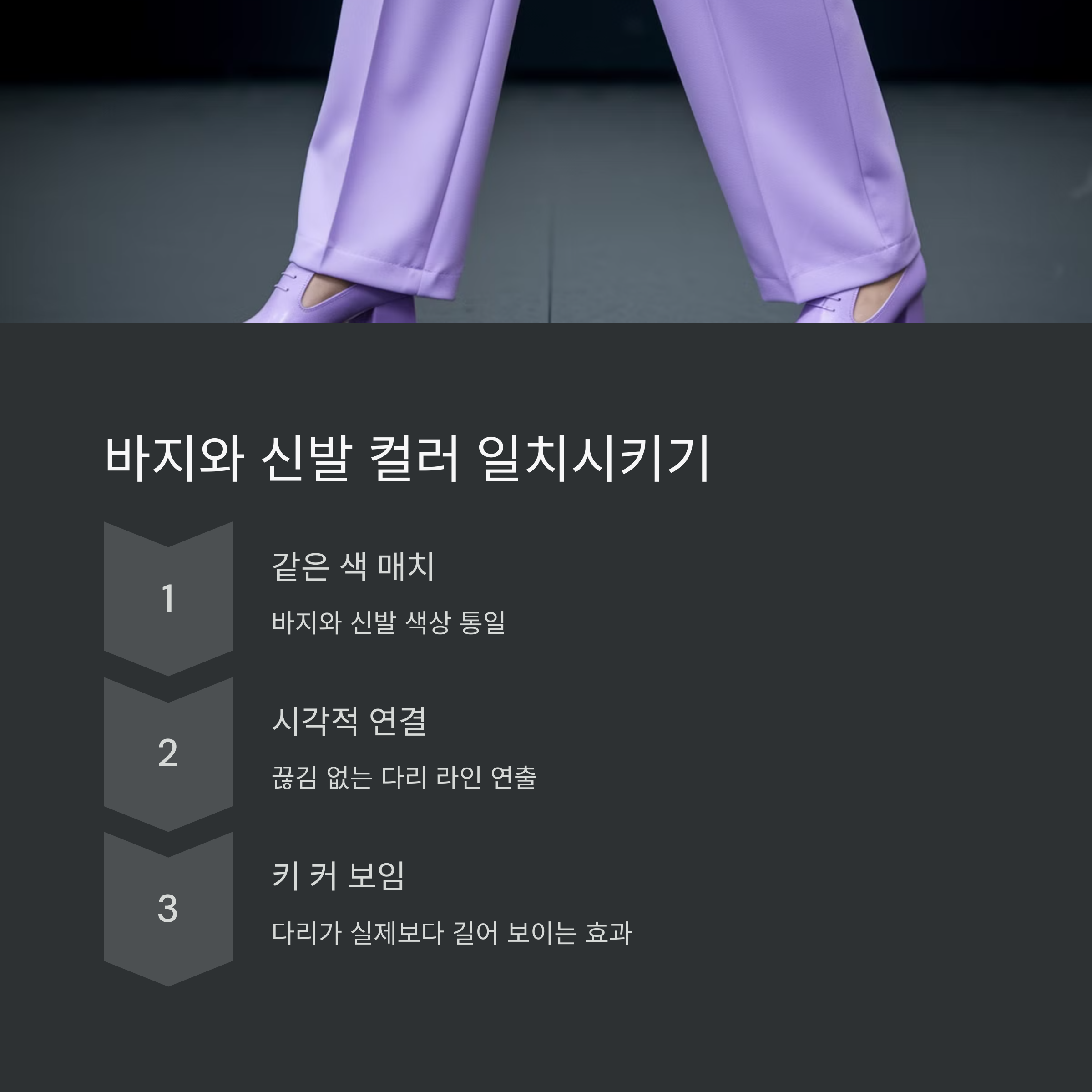 - 신발 & 바지 컬러 통일: 바지와 신발 색을 맞춰 시선 연장