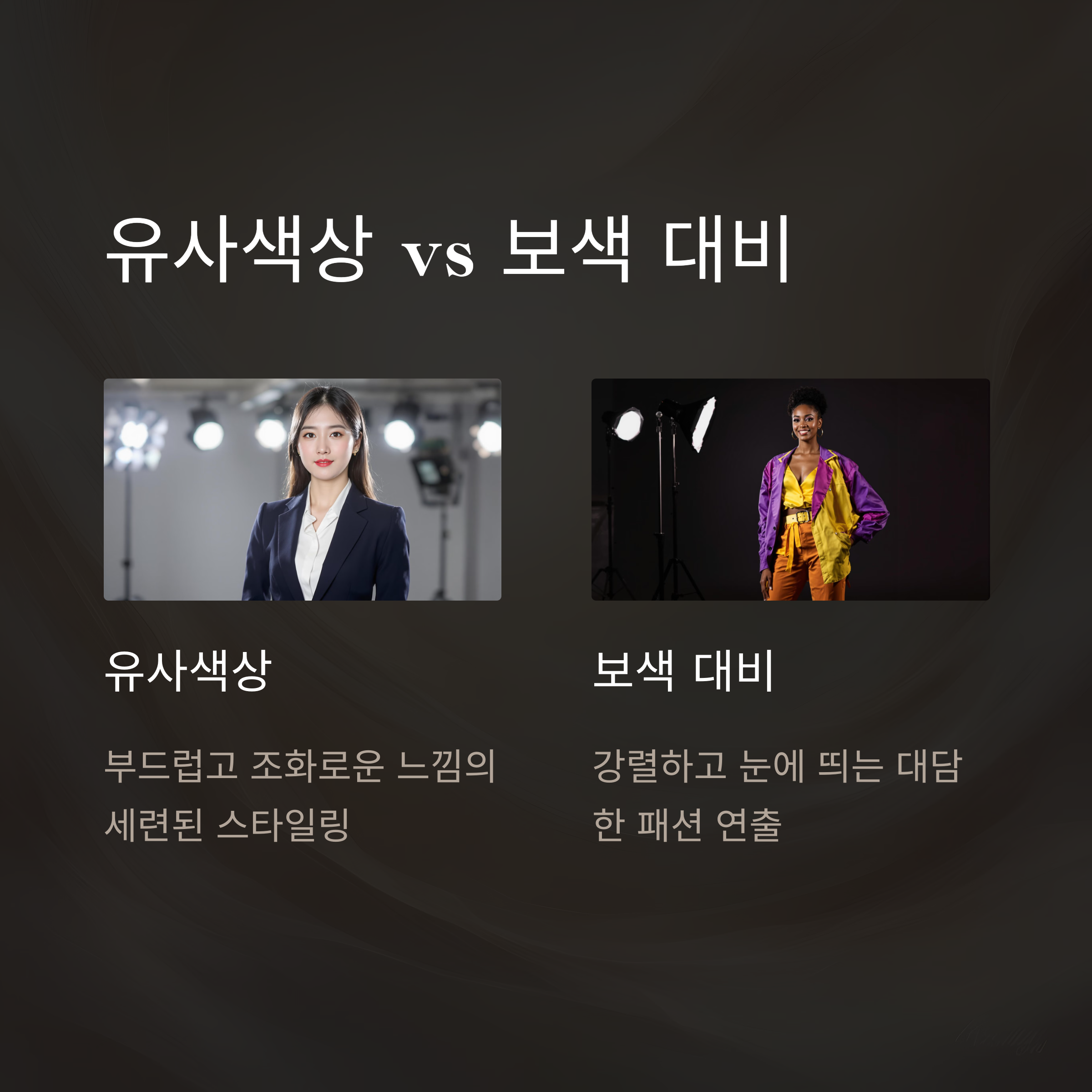 - 유사 색상과 보색 대비 활용: 같은 계열의 색상을 매치하면 부드러운 분위기를, 보색을 활용하면 강렬한 스타일을 연출할 수 있습니다.