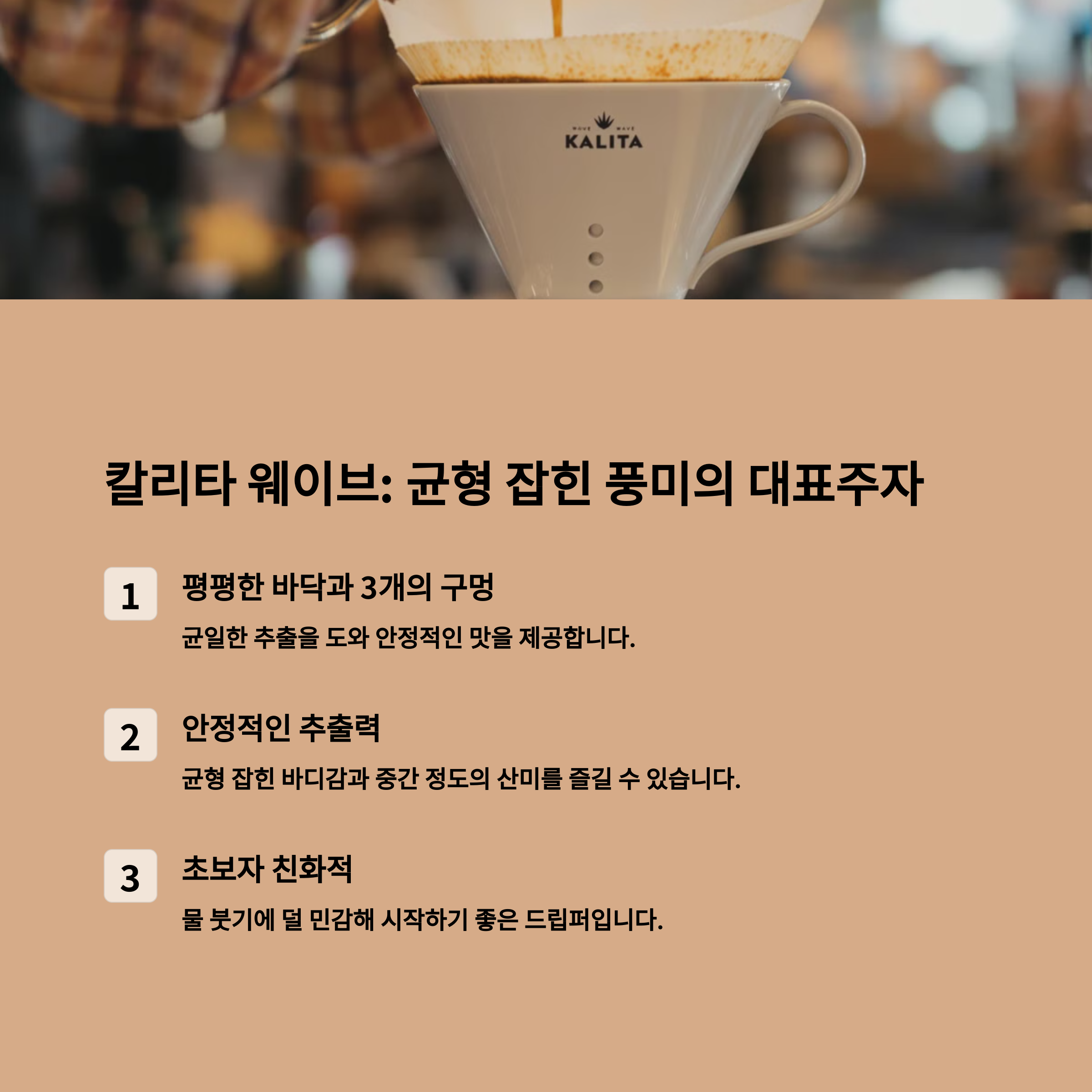 - 부드럽고 균형 잡힌 커피를 원한다면 → 칼리타 웨이브 추천