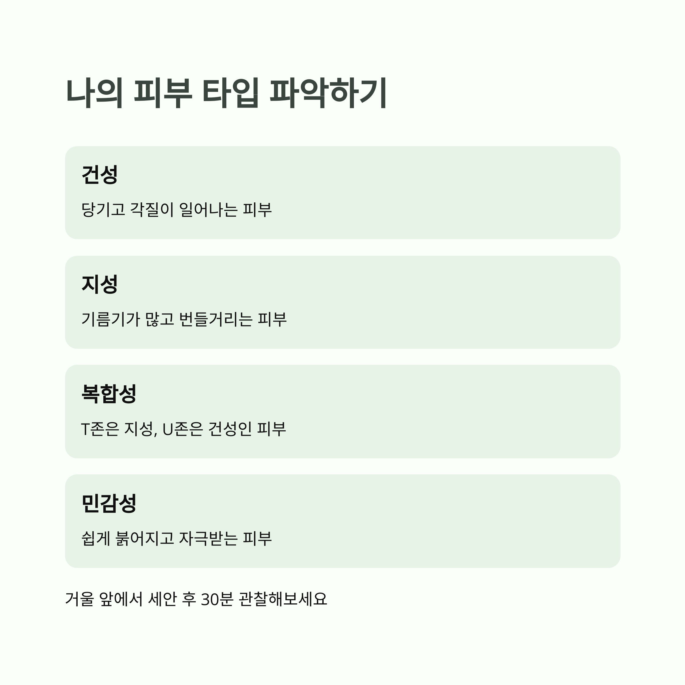 - 복합성 피부: T존(유분 많은 부위)엔 매트, 볼 부분엔 촉촉한 제품 사용