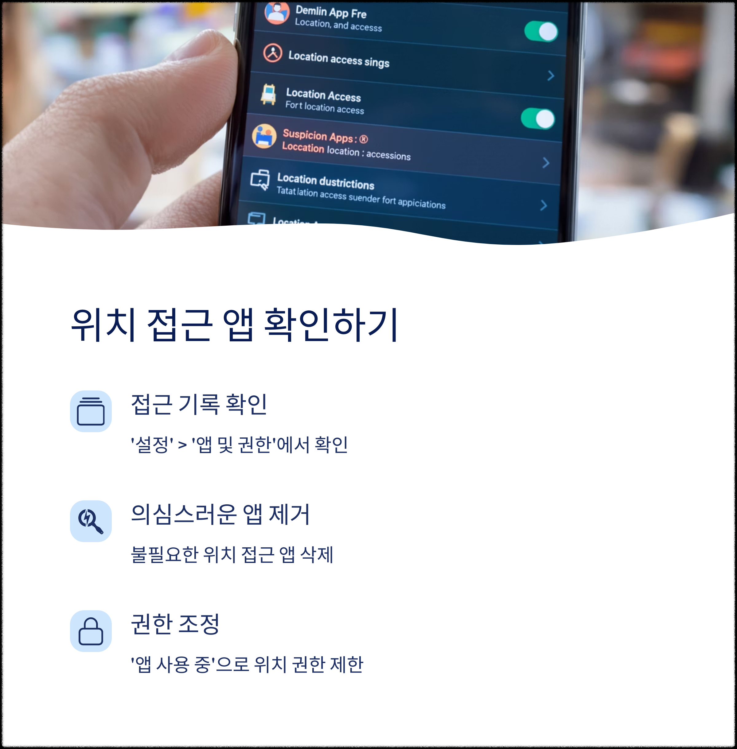 - 설정 → 위치 → 앱 위치 권한 → 불필요한 앱은 ‘거부’ 선택