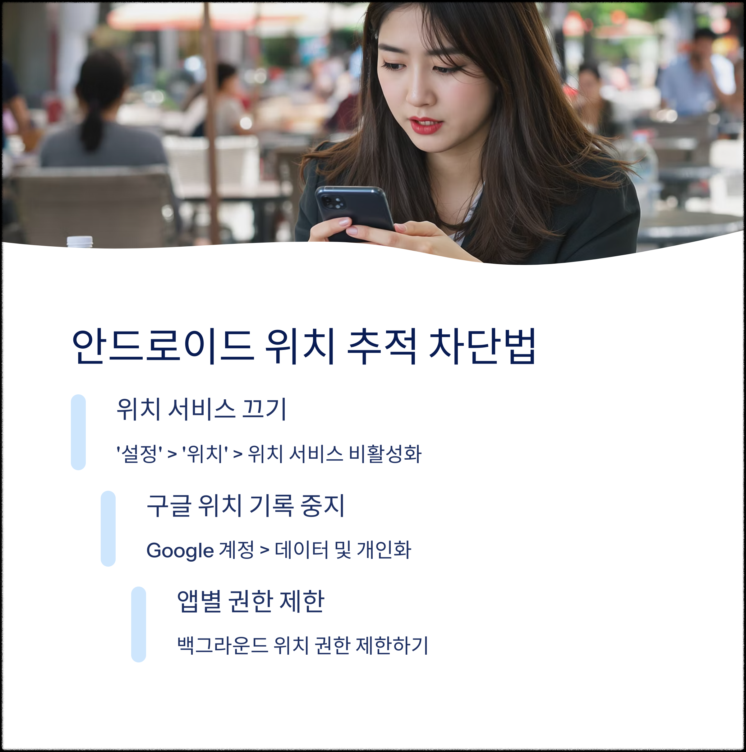 위치 정보는 사용자의 일상과 이동 경로를 거의 실시간으로 드러내는 민감한 데이터입니다. 설정 한 번으로 내 사생활을 지킬 수 있다면 지금 바로 스마트폰 설정에서 위치 추적 차단을 실행해보세요.