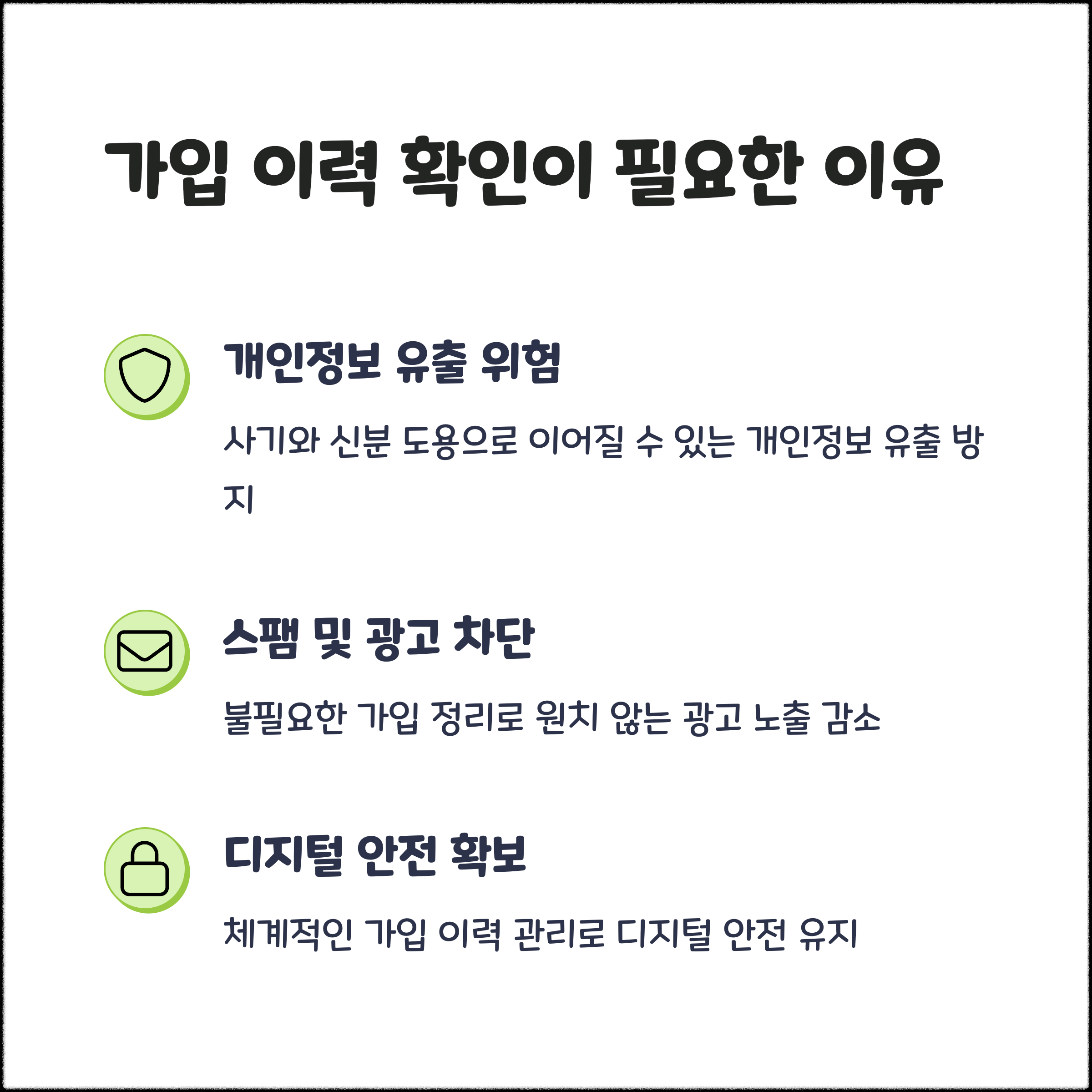 가입 이력을 관리하면 스팸 문자의 빈도가 줄어들고, 오래된 정보가 보관된 서버를 정리함으로써 정보 유출 위험도 낮아집니다. SNS, 쇼핑몰, 포털 등 중복 가입된 사이트들은 필요 시 통합하거나 탈퇴하는 루틴을 만드는 것이 좋습니다.