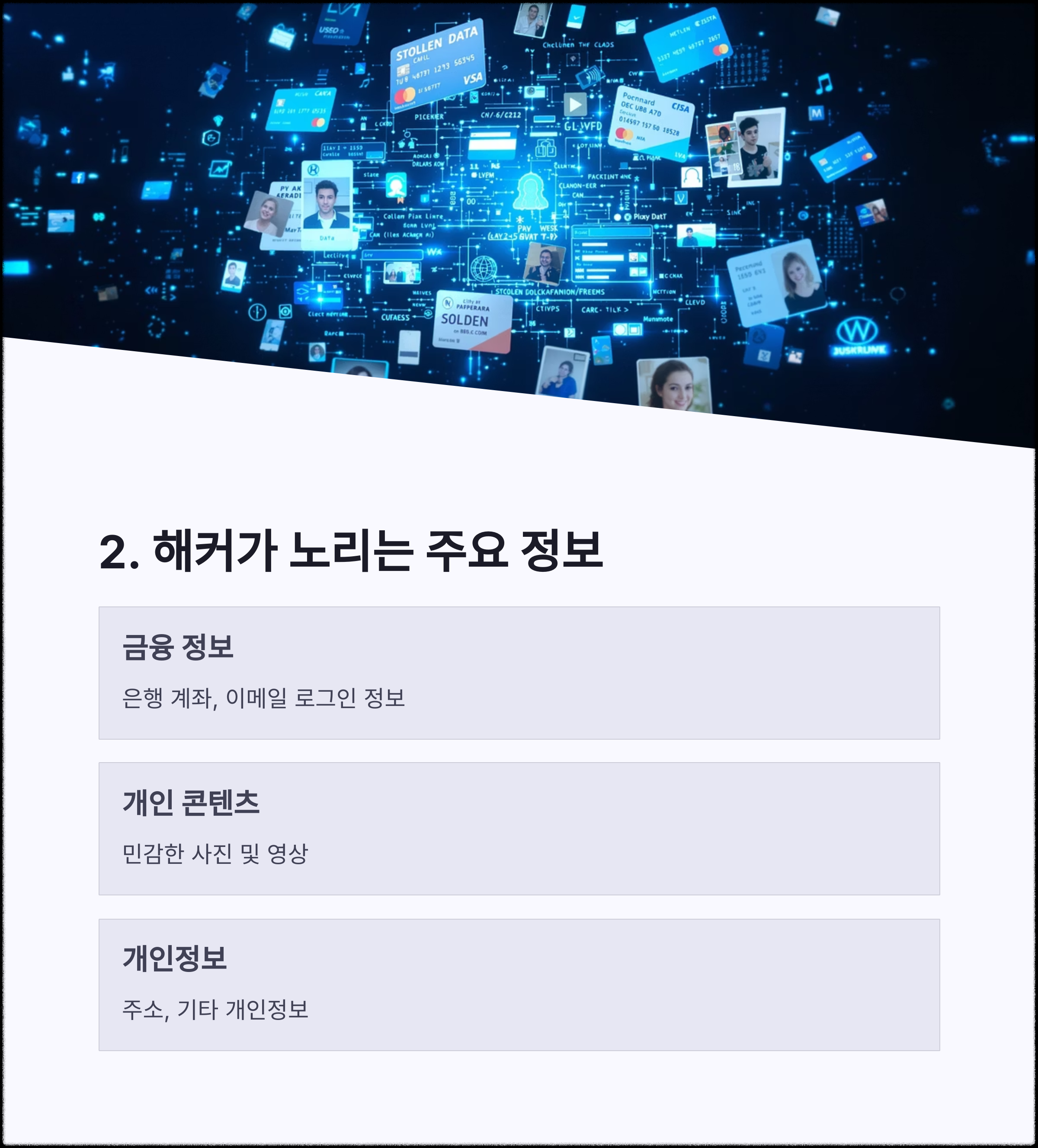 이러한 정보는 계정 도용, 스팸, 피싱 사기 등에 악용될 수 있습니다.