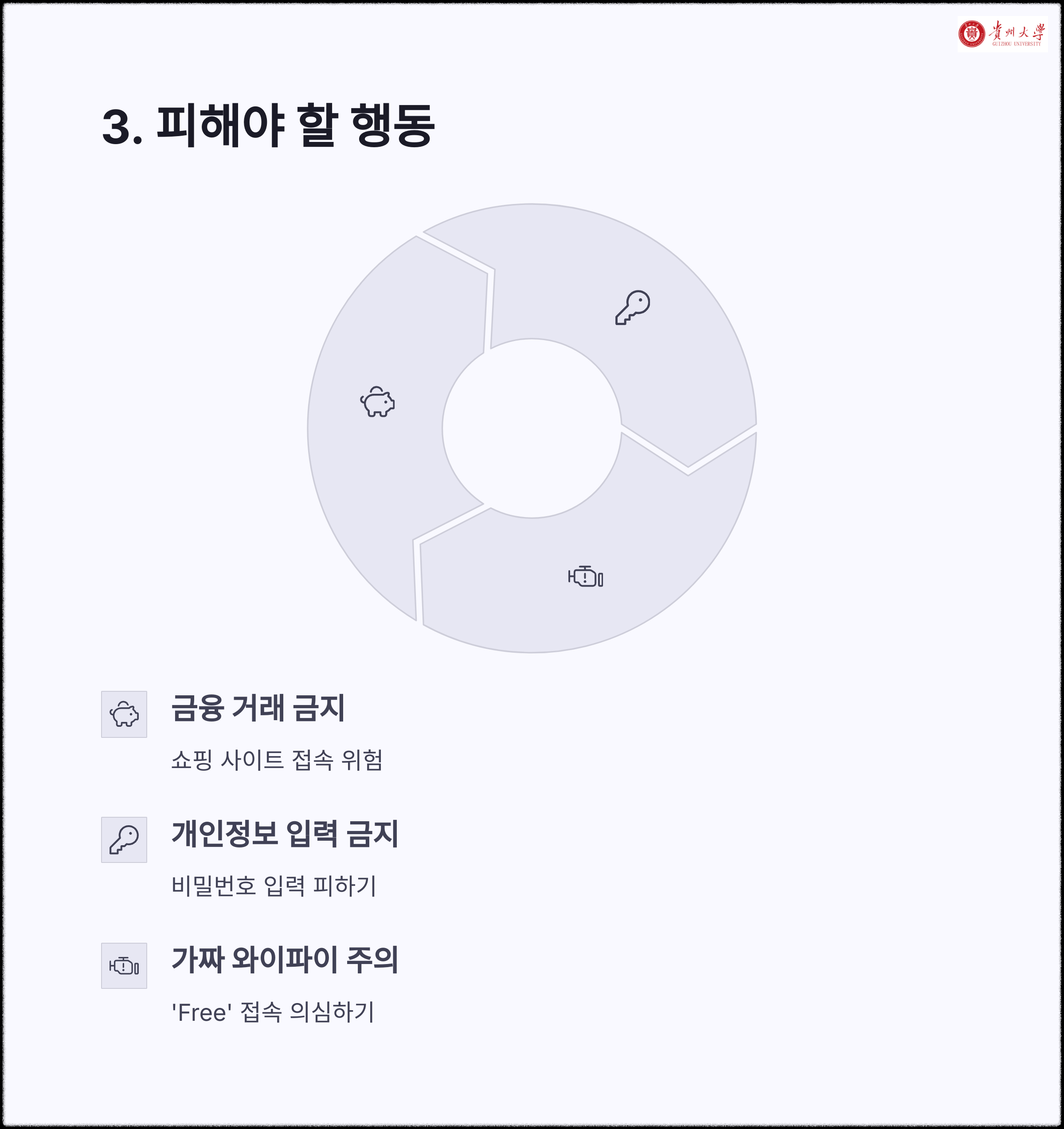 공용 와이파이는 암호가 없거나 여러 명이 동시에 접속하는 환경이기 때문에 해커가 네트워크 상의 데이터를 가로채기 쉽습니다. 특히 웹사이트 로그인, 이메일, 은행 업무를 진행하는 경우 민감한 정보가 노출될 가능성이 높습니다. 보안이 설정되지 않은 와이파이는 ‘열려 있는 문’과 같습니다.