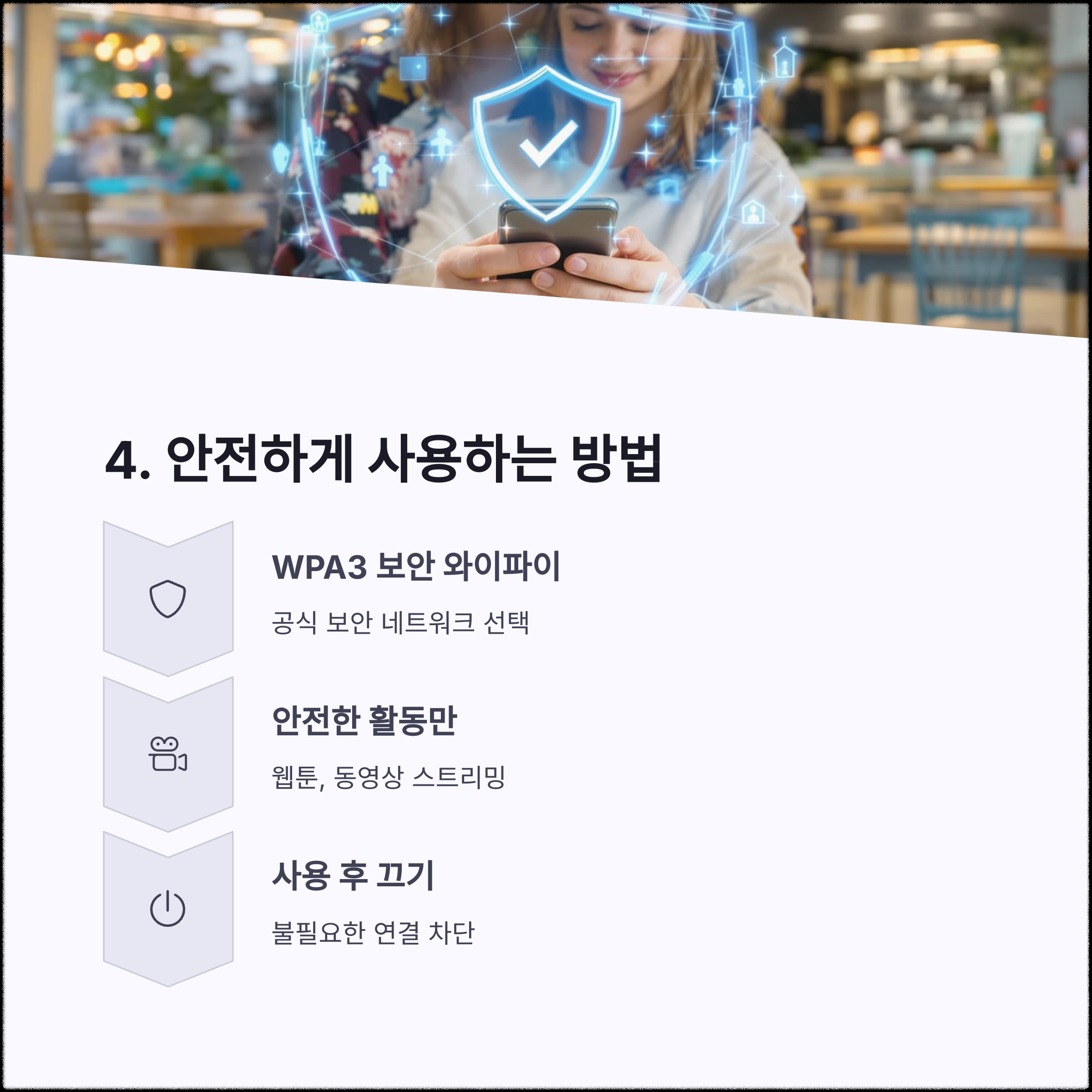 카페, 공항, 기차역, 도서관. 언제 어디서나 편리하게 사용할 수 있는 공용 와이파이(Wi-Fi)는 우리의 생활에 없어선 안 될 필수 인프라가 되었습니다. 하지만 그 편리함 뒤에는 보안 위협이라는 그림자가 숨어 있습니다. 누구나 접속할 수 있는 네트워크인 만큼 개인정보 유출, 계정 해킹, 트래픽 감청 등의 위험에 쉽게 노출될 수 있죠. 이 글에서는 공용 와이파이 사용 시 개인정보를 지키기 위한 실질적인 보안 수칙을 소개합니다.