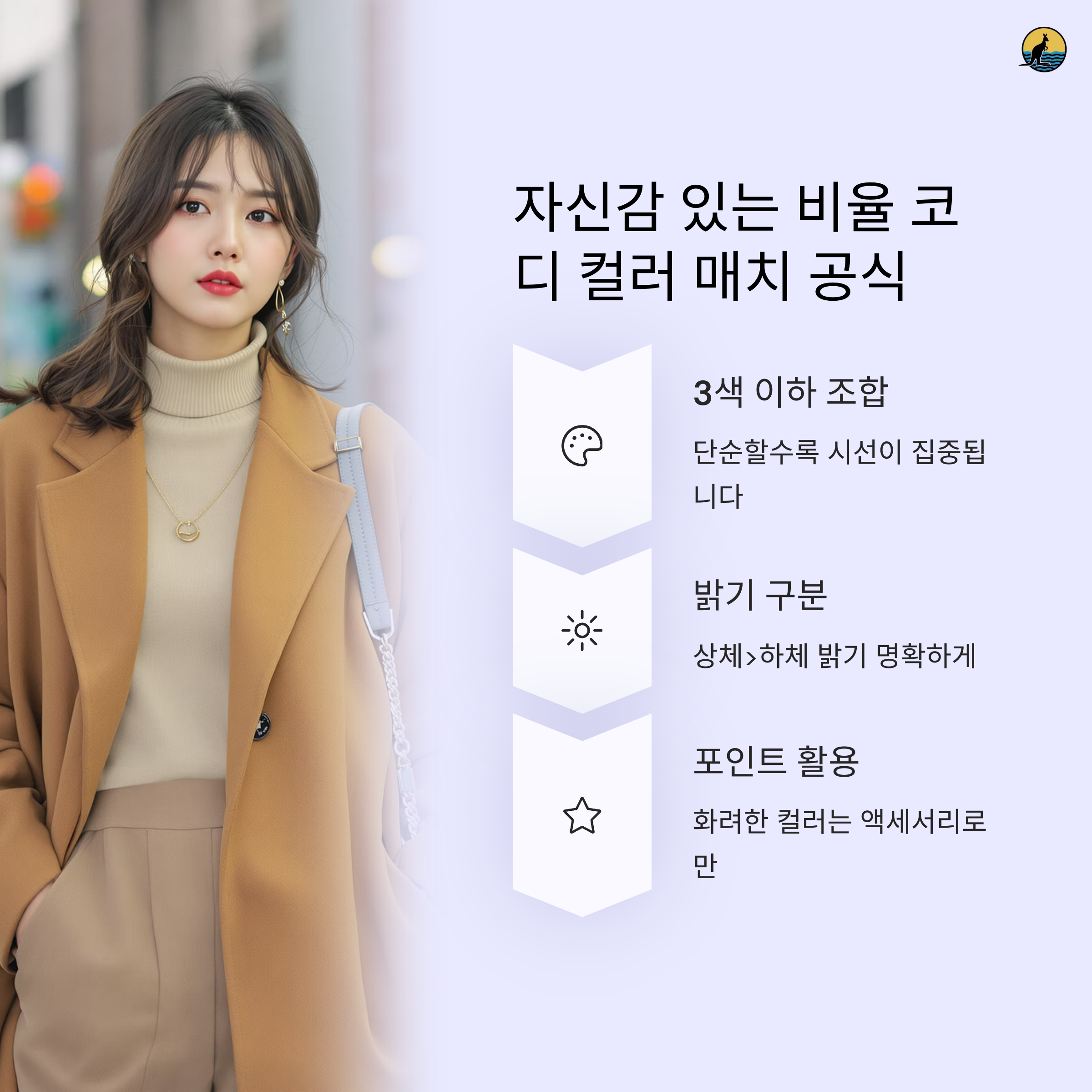 컬러는 단순히 예쁜 색을 고르는 것이 아니라 시선을 설계하고 전체 밸런스를 다듬는 역할을 합니다 오늘 소개한 컬러 매치 전략은 특별한 옷이 없어도 지금 가지고 있는 기본템으로도 충분히 비율 개선에 활용할 수 있는 팁입니다