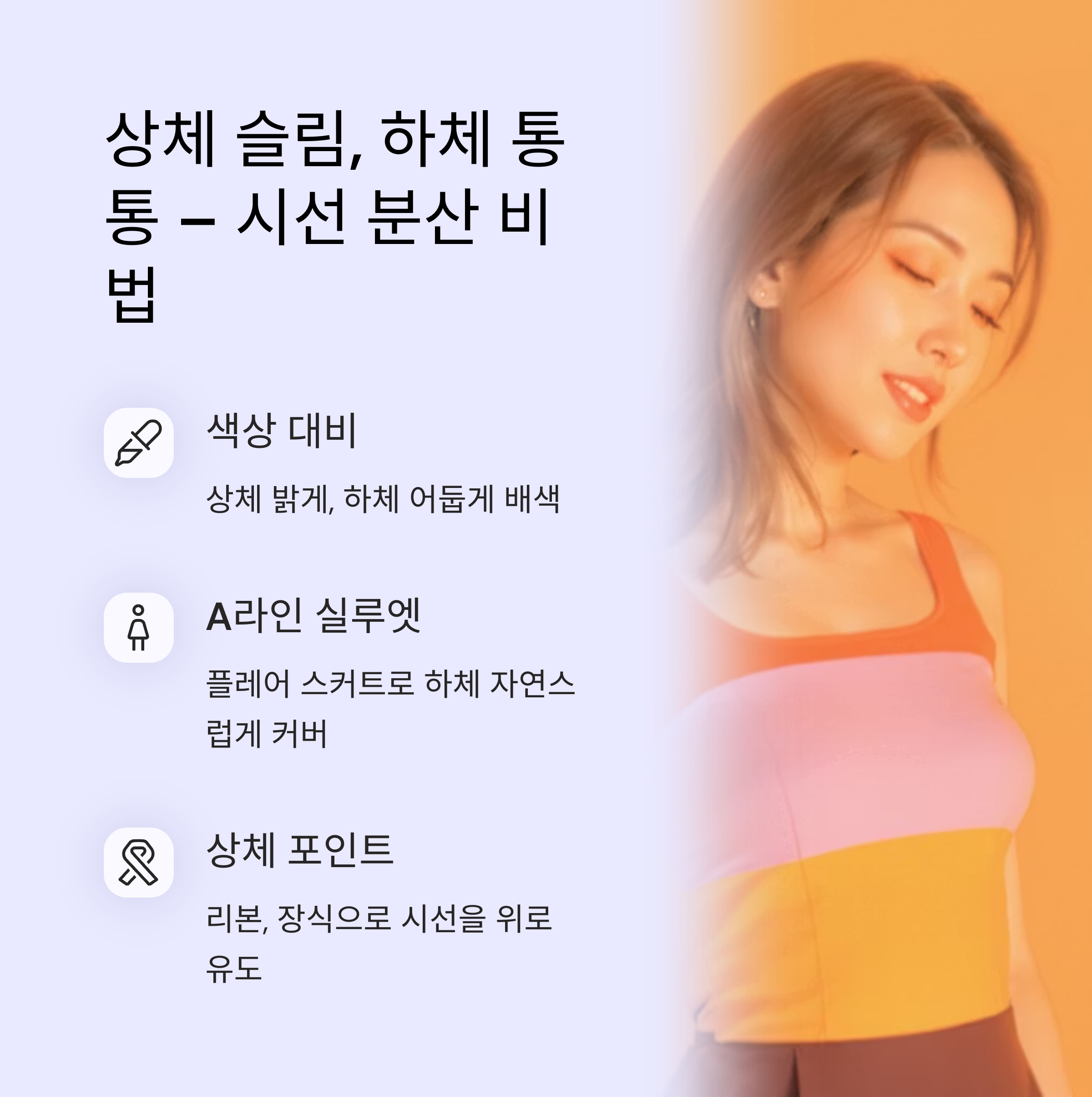 2. 상체는 마른데 하체가 통통한 체형, 시선 분산이 핵심