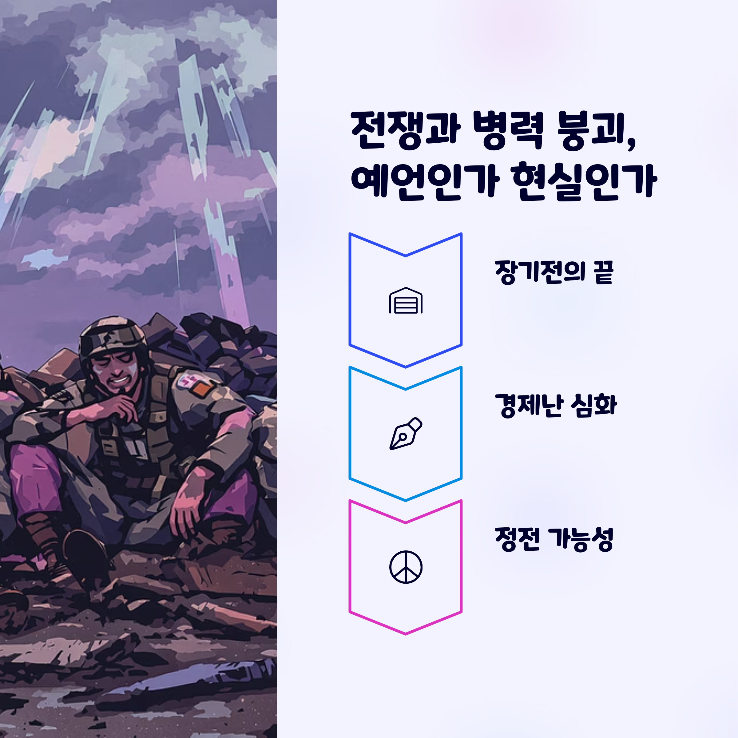 전쟁으로 인한 국방비 고갈, 병력 부족, 국민 피로도는 현재의 현실과 상당히 닮아 있다.