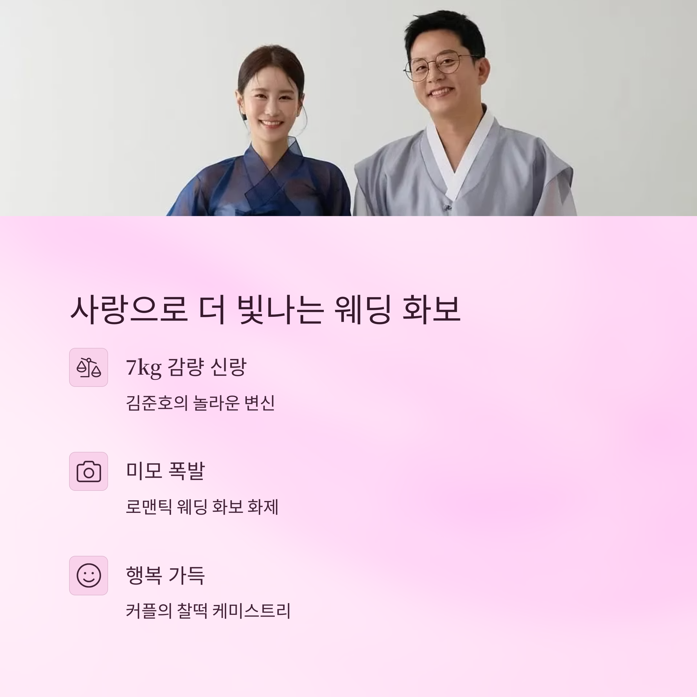김준호와 김지민의 결혼은 단순한 화제가 아니라 성숙하고 배려 깊은 관계가 만들어낸 결실입니다. 긴 시간 동안 함께한 과정을 대중과 공유하며 진심을 보여준 이 커플은 앞으로도 많은 사랑을 받을 것으로 예상됩니다. 두 사람의 앞날에 축복이 가득하길 바랍니다.
