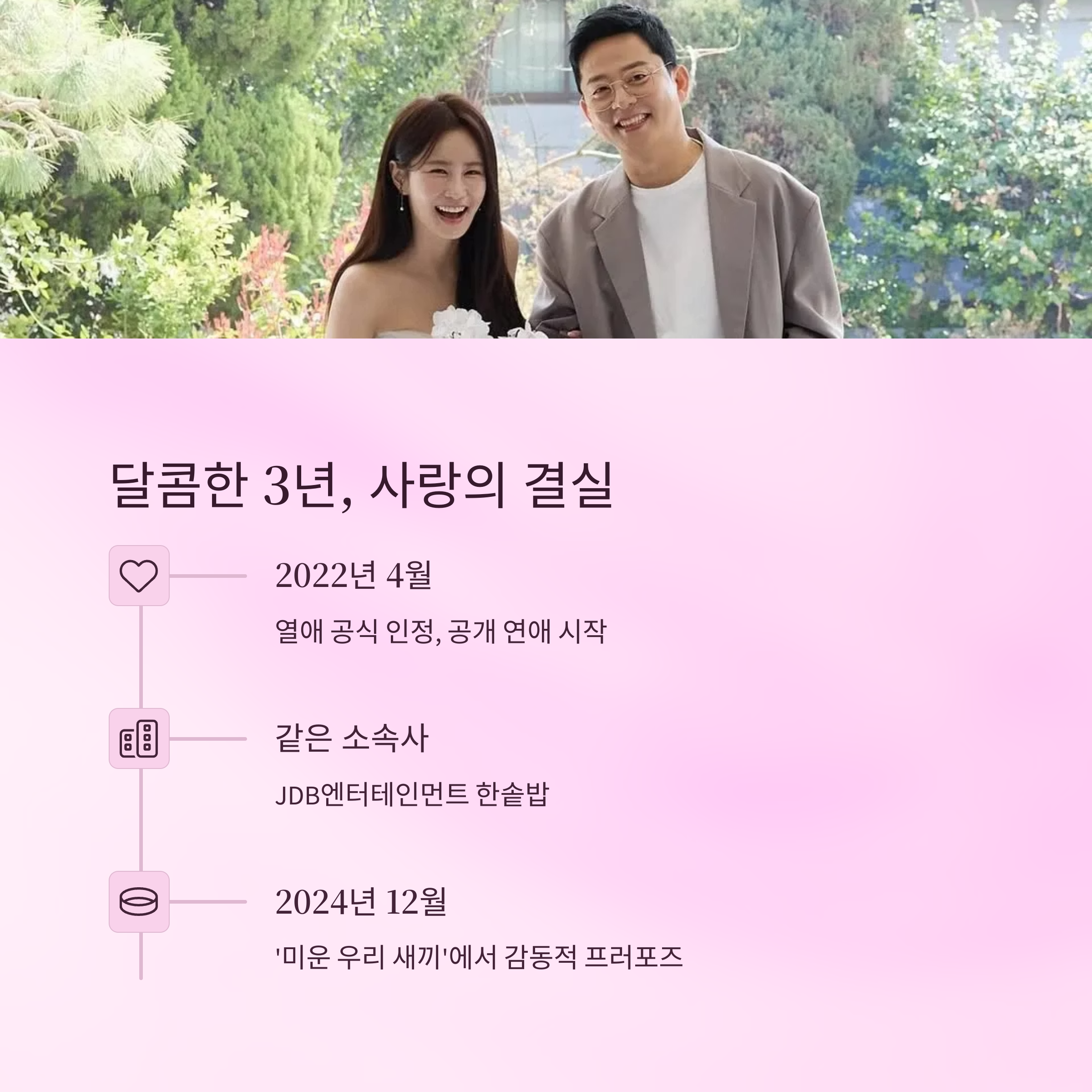 이 커플은 웃음을 주는 직업답게 서로를 향한 유쾌한 애정 표현으로 많은 이들의 응원을 받았고, 공개 연애를 부담스러워하지 않고 당당히 나서는 모습은 대중에게 호감을 심어주기에 충분했습니다.